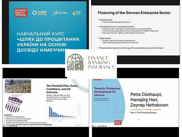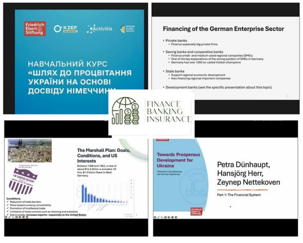 16 жовтня 2025 року викладачі кафедри фінансів, банківської справи та страхування Володимир СИБІРЦЕВ, Ольга КОЦЮРБА, Тетяна МЕЛЬНИК та Лариса ЗАДОРОЖНЯ відвідали перший онлайн семінар на тему: «Фінансова система для промислового розвитку» в рамках нового навчального курсу «Шлях до процвітання України на основі досвіду Німеччини» проведений Ukraine Global Faculty.