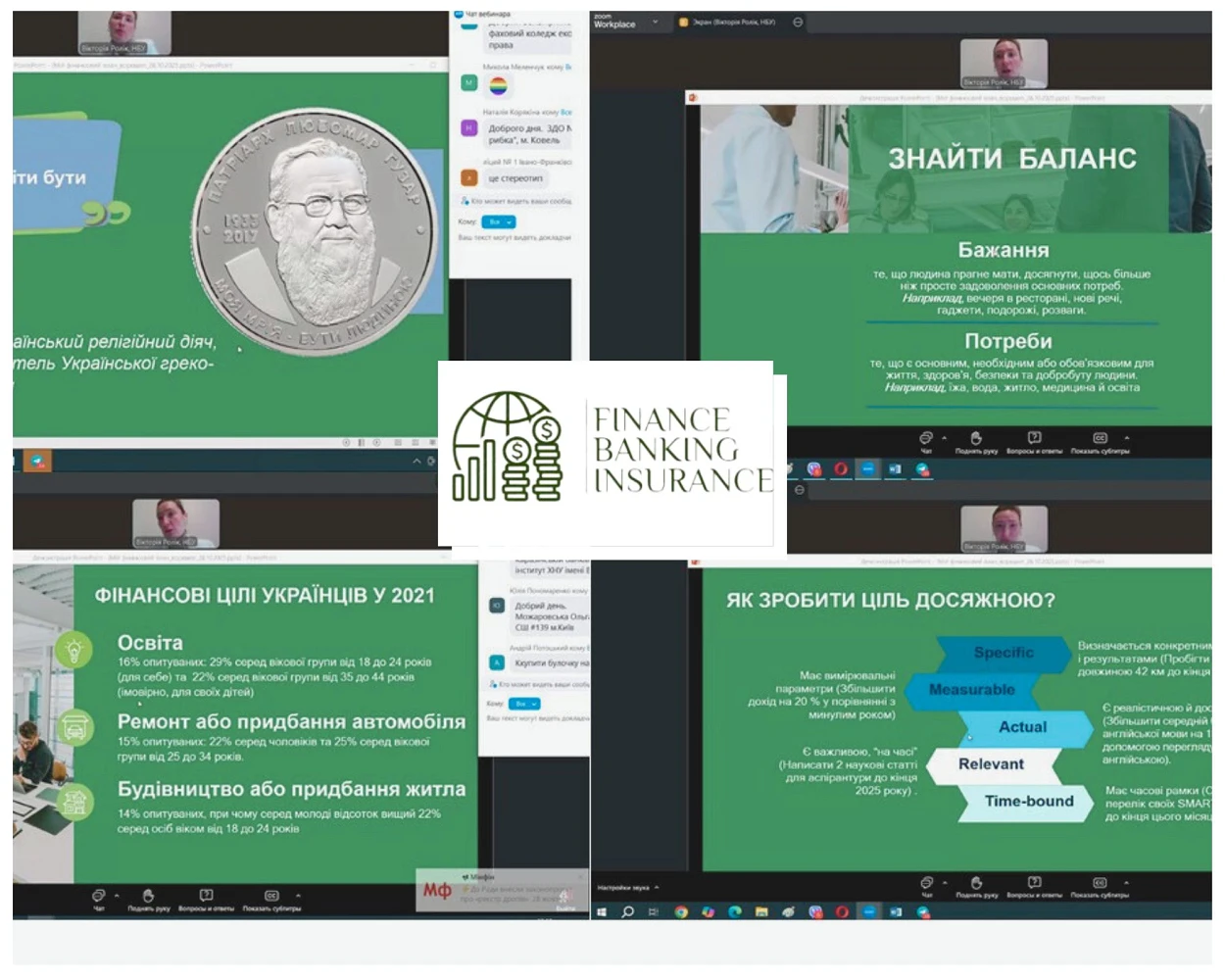 Спікер: Вікторія Ролік — головний експерт управління зв’язків з громадськістю та фінансової обізнаності Департаменту комунікацій НБУ. На вебінарі обговорили питання: як оцінити власне фінансове становище; як формулювати та досягати фінансові цілі; як приймати зважені фінансові рішення; як скласти персональний фінансовий план. Практичний формат зустрічі дозволив учасникам не лише ознайомитися з теоретичними основами фінансового планування, а й отримати корисні інструменти для застосування у повсякденному житті, професійній діяльності та освітньому процесі.
