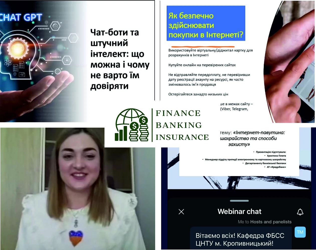 11 лютого НПП кафедри ФБСС разом зі здобувачами 1, 2, 4 курсів спеціальності «Фінанси, банківська справа, страхування та фондовий ринок» взяли участь у вебінарі Національного банку України за участі представника АТ «КРЕДОБАНК» з питань фінансової безпеки на тему «Інтернет-павутина: ризики, шахрайство та способи захисту».